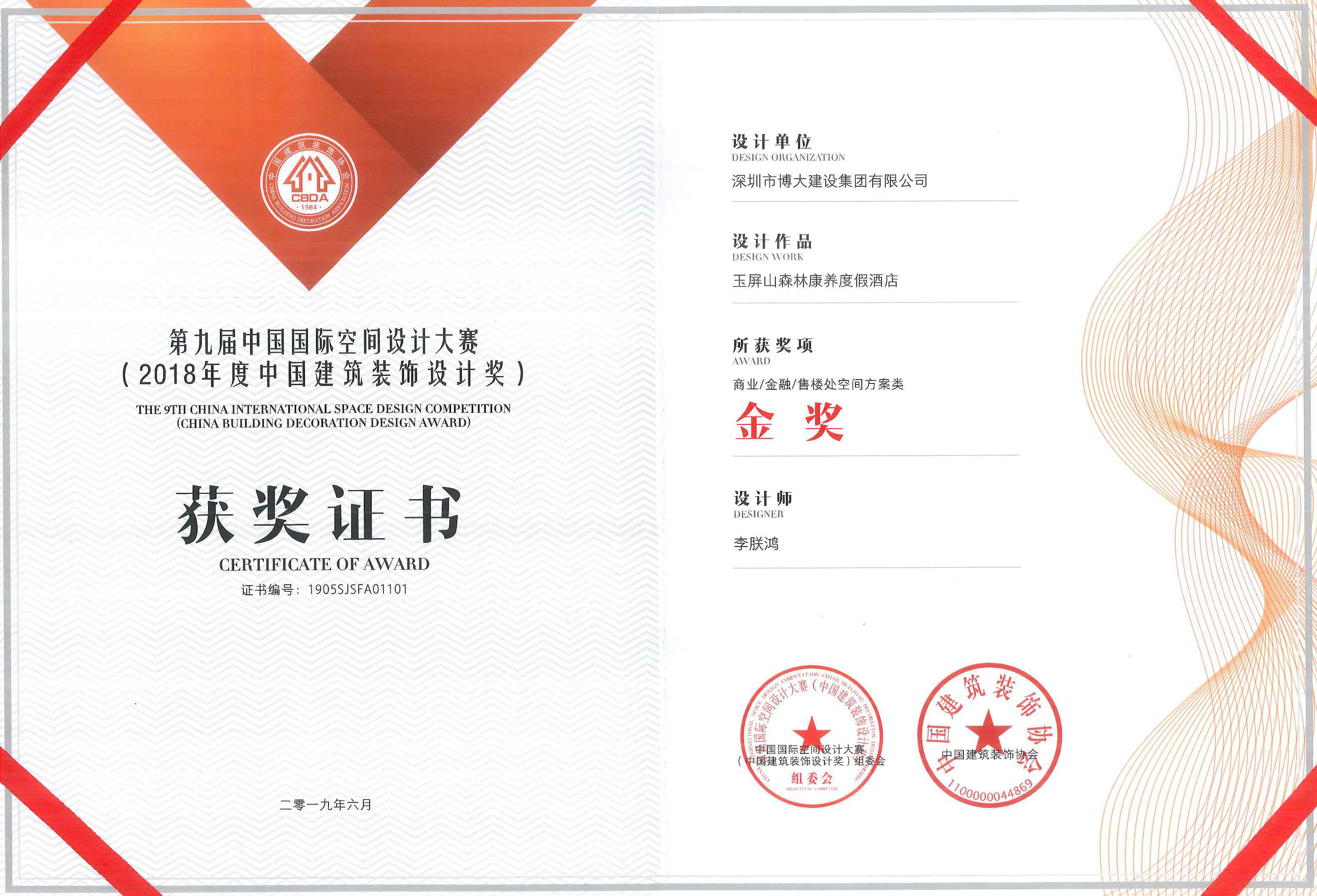 博大獲得2018年度中國(guó)建筑裝飾杰出幕墻設(shè)計(jì)機(jī)構(gòu),總裁李朕鴻榮獲商業(yè)方案類(lèi)設(shè)計(jì)金獎(jiǎng),設(shè)計(jì)院院長(zhǎng)方邵文榮獲娛樂(lè)空間方案類(lèi)設(shè)計(jì)銀獎(jiǎng)。