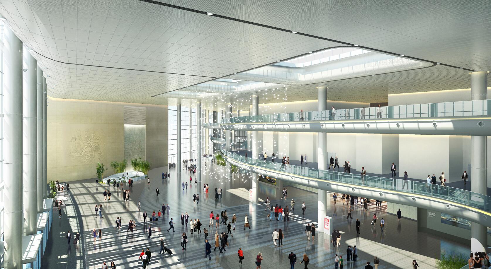 濟南西部會展中心位于濟南市槐蔭區,濟南西部新城核心區,東至二環西路、西至濱州路、南至日照路、北至威海路,交通便利。項目可規劃用地約332畝,總建設面積約55.5萬平方米,其中地上建筑面積約37.5萬平方米,地下建筑面積約18萬平方米。